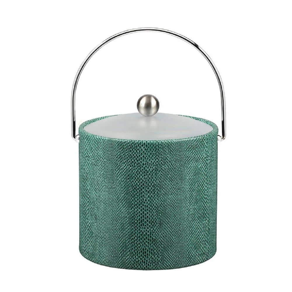 Kraftware Designer Vinyls show a new sophistication in color, texture, and style. Our Exotics have the appearance of colorful snake skin in fine detail. 3 qt. Exotic Peacock Ice Bucket features a metal bale handle, and includes an acrylic lid with metal ball knob.