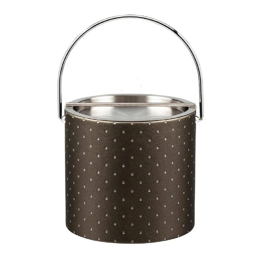 Kraftware Designer Vinyls show a new sophistication in color, texture, and style. Nova features a sophisticated dot pattern, offered here in a rich pewter. 3 qt. Nova Pewter Ice Bucket features a metal bale handle, and includes a sleek metal bar lid.