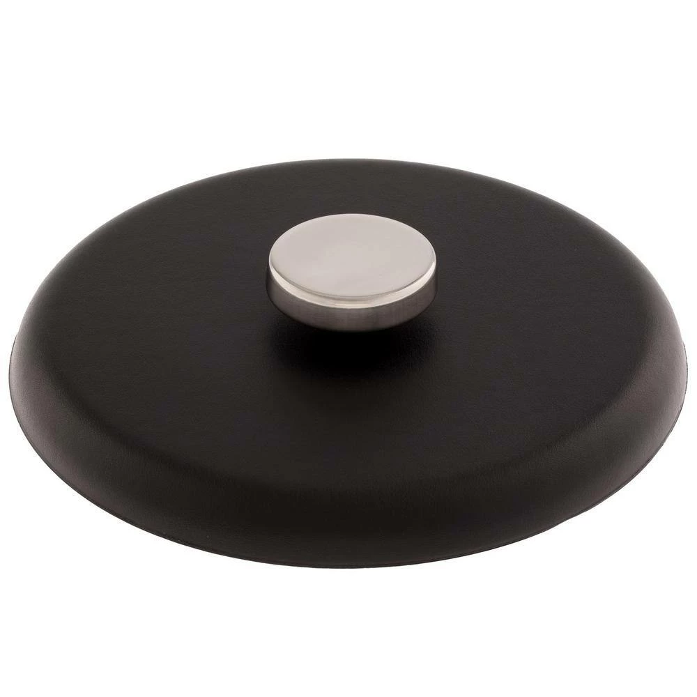 - Includes domed leatherette lid enhanced with brushed metal flat knob