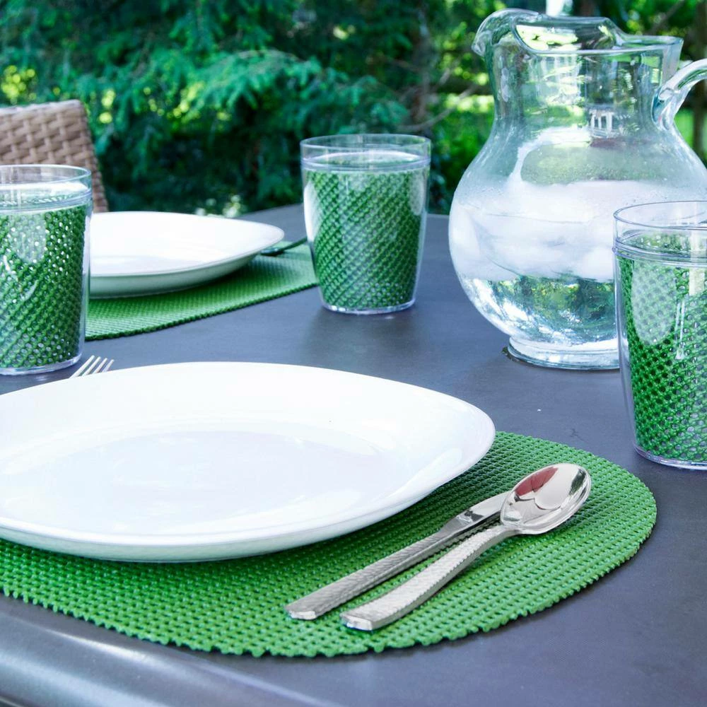 Our Fishnet Oval Placemats are available in a variety of colors to enhance your casual table settings. Fishnet material is a jute-based netting covered with a colorful PVC coating. This durable material is food-safe, fade resistant and tear resistant, and is ideally suited for indoor or outdoor use. Easy-care 17 in. x 12 in. placemats are available in multiple colors, each sold as a set of 6.