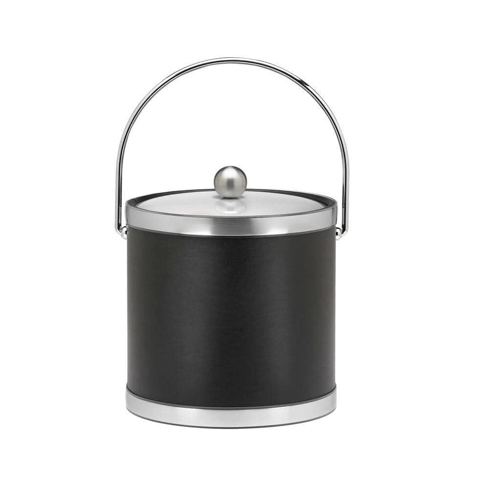 Always in style, Kraftware classic designs are perfect for any occasion. The Sophisticates collection features leatherette vinyl, accented with metallic trim. This 3 Qt. Ice Bucket with bale handle and metal cover is black with brushed chrome trim. Traditional design with the look of leather and a touch of elegance.